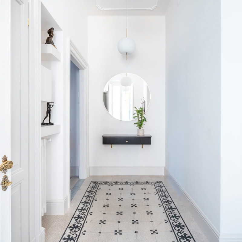 Le diffuseur sphérique en verre opalin soufflé à la bouche diffuse une lumière homogène et enveloppante, parfaite pour créer une atmosphère intime et chaleureuse. Traversé par une tige métallique en finition cuivre brillant, le verre prend une toute autre dimension : plus graphique, plus luxueux, tout en conservant sa poésie visuelle.