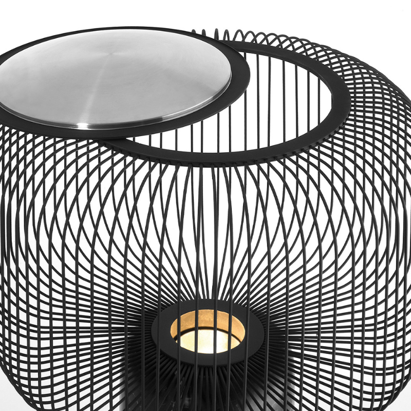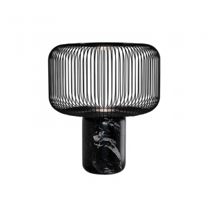 La lampe Keshi Ø32 cm est l’une des pièces les plus raffinées de la collection B.Lux. Imaginée par le designer David Abad, elle combine une esthétique sculpturale à des matériaux d’exception. Sa base en marbre noir de Markina, naturellement veinée, offre une présence forte et luxueuse, tandis que son abat-jour en barrettes de métal noir mat crée un jeu d’ombres subtil dès que la lumière s’allume.