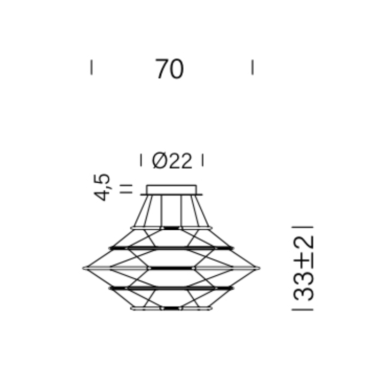 Dotée d’un module LED linéaire intégré de 35W, la Drop 5 diffuse une lumière douce et homogène (2700K, 3350 lm, CRI 90), idéale pour créer une ambiance chaleureuse dans divers espaces intérieurs. Avec un diamètre de 70 cm et une hauteur de 33 cm, elle s’intègre harmonieusement au-dessus d’une table à manger, dans un salon ou un hall d’entrée. Son câble de suspension de 2,5 m offre une flexibilité d’installation selon la hauteur sous plafond.